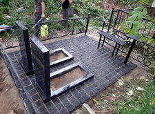 Когда памятники были готовы, мы приступили к работам на участке. В первую очередь мы очистили могилу от сорной травы, а затем вкрутили сваи, которые в дальнейшем будут опорами для памятников.