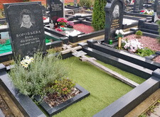 В результате проделанных работ мы: во-первых, почистили искусственный газон и убрали с него весь мусор; во-вторых, мы помыли гранитное ограждение и памятник; в-третьих, очистили цветник от завядших растений. В заключении мы положили православный крест на его изначальное место.