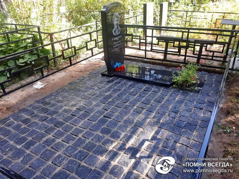 Очередной заказ по укладке наземного покрытия на территорию места захоронения. Клиент устал постоянно бороться с сорной травой, а потому решил раз и навсегда разрешить проблему, уложив на «пол» могилы гранитную брусчатку.